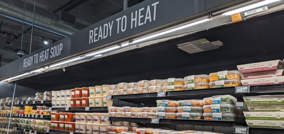 Much like its Go Grocery stores, Amazon Fresh includes a wide selection of packaged meals, sides and meal starters. This includes a variety of ready-to-heat and ready-to-eat options, many of them under the Amazon Kitchen brand. Ready-to-heat items include dishes for two like chimichurri rojo beef, teriyaki glazed salmon and beef meatballs. Its "one pan" items include red curry tofu, chicken pad thai and butter chicken curry.