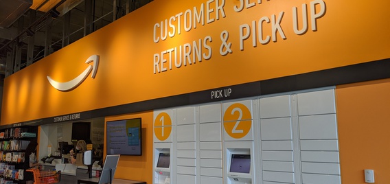 In the far right corner of the store, customers will find the customer service counter where they can return products purchased in the Fresh store up to 30 days after purchase, return online Amazon orders or pick up their online orders.