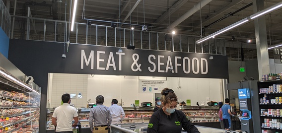 If a shopper doesn't want to wait in line to order meat and seafood, they can scan a QR code located in the department and order ahead. The items are prepared while the customers shops the store and can be picked up at the counter.