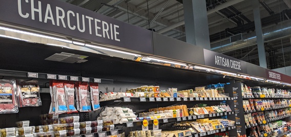 The store's charcuterie and artisanal cheese selection was extensive. Shoppers can pick up a pre-prepared charcuterie board, which features a variety of meats and cheeses, or make their own with items from the shelf. Items include Cerignola green olives, sweet soppressata, Italian salami with garlic and wine, goat milk cheese with lavender and fennel, and Wensleydale cheese with blueberries.