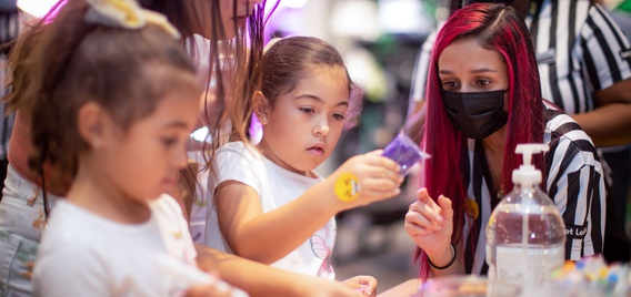Stores have clothes for babies all the way up to "big kids" and feature brands including Nike, New Balance, Crocs and Timberland. The concept is divided into different sections by age, so that the assortment and play experiences match a given age group. For toddlers, the play areas include padded climbing structures, for example, whereas older kids can play at a gaming lounge or use a homework table. A "central playscape" in the middle of the concept serves as a community area for all kids to play. The space is "highly modular to allow in-store events and community-focused programming, like workshops, keynote speakers, and more," according to the retailer.