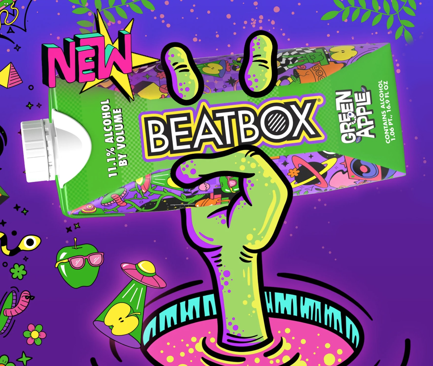 Zech Francis, VP of Global Marketing for BeatBox states, “BeatBox stands out because we really listen to our core consumers. We've heard from them at festivals, retail stores, sporting events, and on social media that they wanted a Green Apple flavor. So, we made it happen. Our new BeatBox Green Apple is the perfect mix of tart and sweet. Plus, it keeps all the great features of BeatBox - it's resealable, recyclable, non-carbonated, and has a strong 11.1% alcohol content. It's not just a new flavor, it's a big step forward for us.”