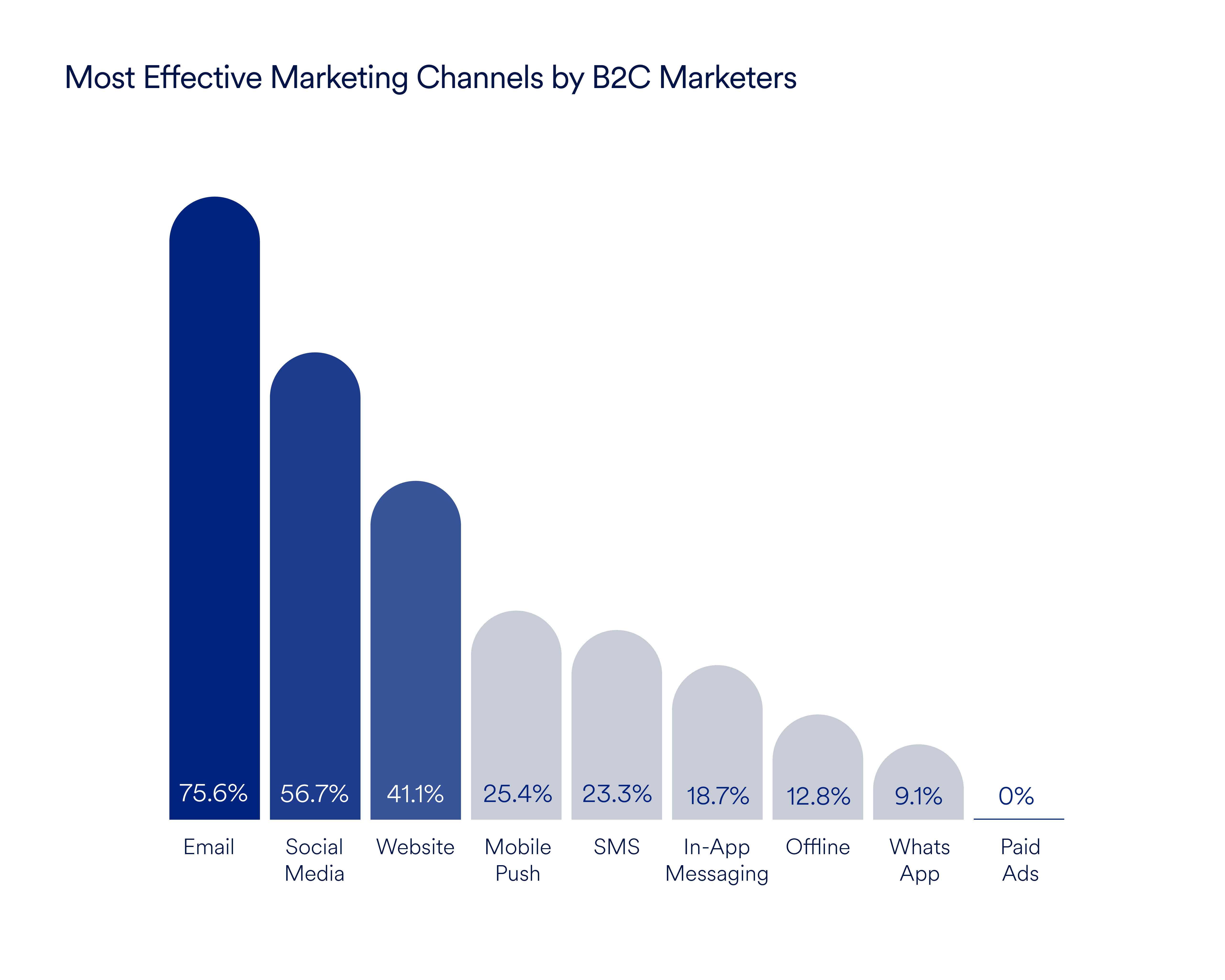 The data points out a growing trend in digital spaces: Mobile Apps, SMS, and Push Notifications are on the rise. While they’re already showing a promising return on investment, marketers have barely scratched the surface of what these channels can do for customer engagement.
