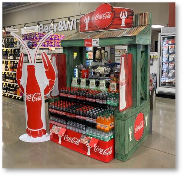 For the Coca-Cola Crawfish Shack display, Tag fashioned a towering Coke bottle into a whimsical crawfish, welcoming the much-anticipated crawfish season. The playful crawfish, complete with attention-grabbing antennae, stands alongside a 3-sided rugged shack showcasing Coca-Cola products, effectively enticing customers. This engaging display not only captured attention but also contributed to an impressive 8.9% increase in total revenue compared to last year's campaign.